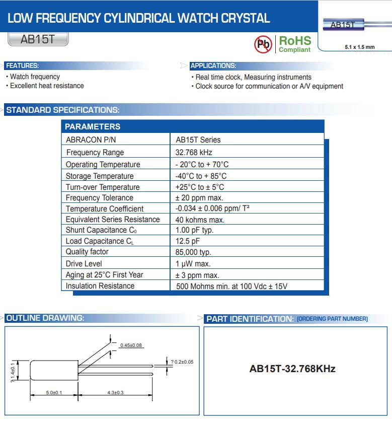 艾博康晶振,AB15T系列型號晶振,32.768KHZ晶振