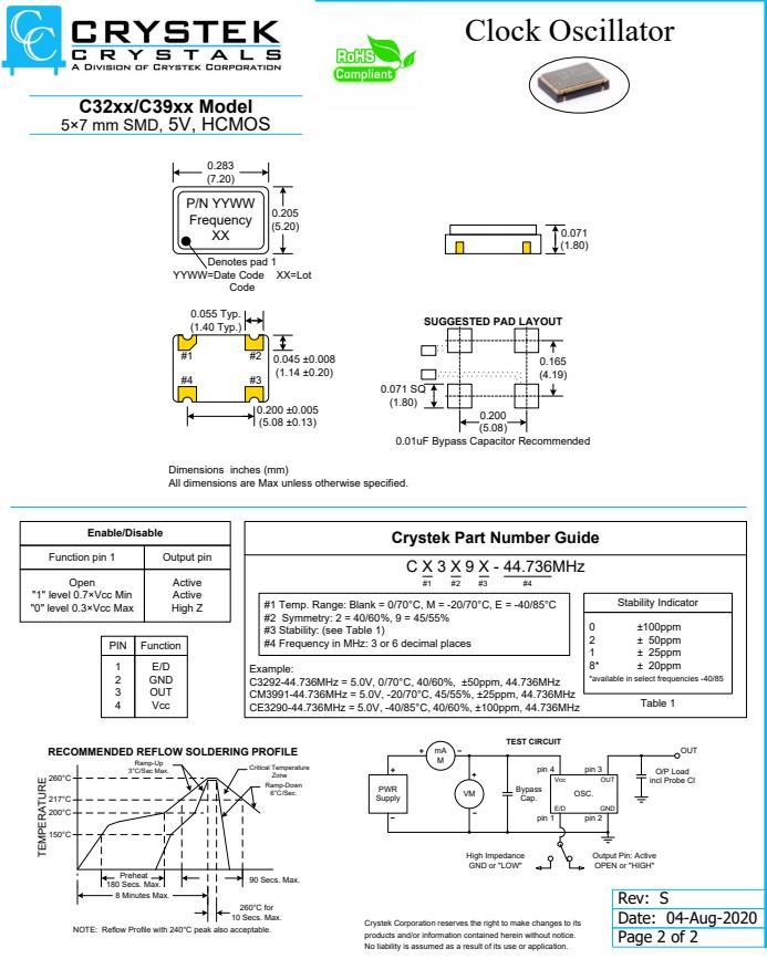 Crystek晶振,C32xx時鐘晶體振蕩器,C3292-26.000MHz有源晶體