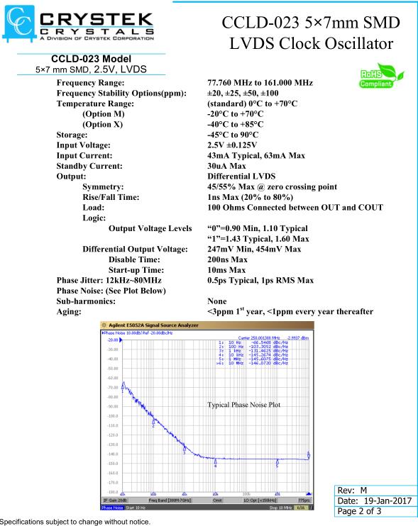 CCLD-023差分振蕩器,Crystek晶振,CCLD-023X-50-120.000晶振