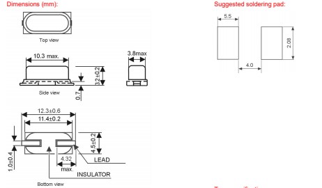 | frequency tolerance at +25°C | standard ± 30 ppm, available ± 10 ~ ± 50 ppm |