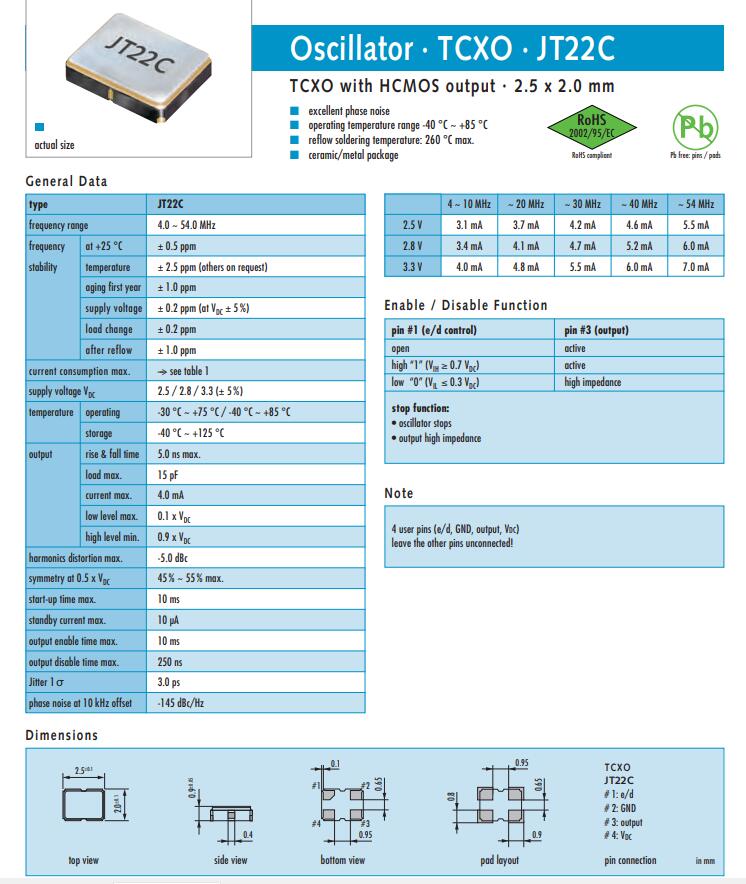 | 型號(hào) | JT22C晶振 (TCXO) | |