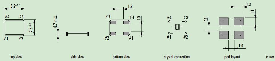 Jauch品牌-Q 25.0-JXE32-12-20/30-T1-6G光纖通道晶振尺寸圖