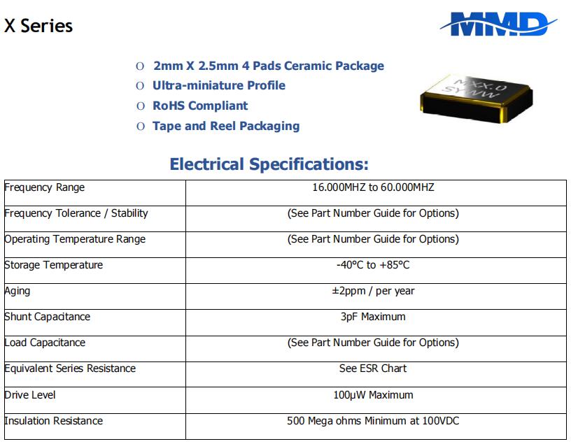 MMDCOMP晶振,X20AB1-18.000MHZ-T,6G路由器晶振規格表