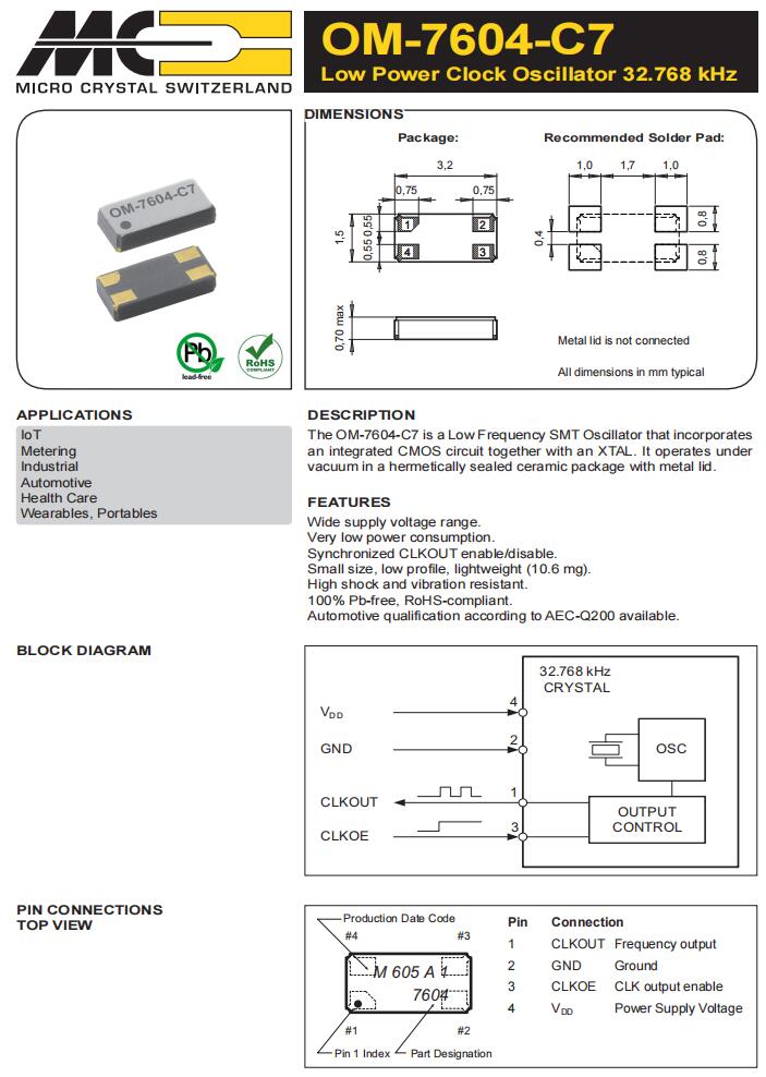 | CM7V-T1A-32.768k-9pF-100PPM-TC-QA | Micro 晶振 | 晶體 32.768 kHz 9.0 pF +/-100 PPM AEC-Q200 | Crystals |