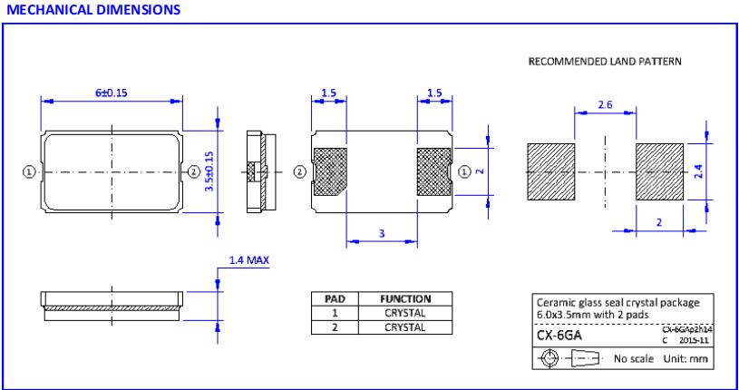NKG晶振|S6GA20.000F12M2Z-EXT|6035低成本晶振尺寸圖