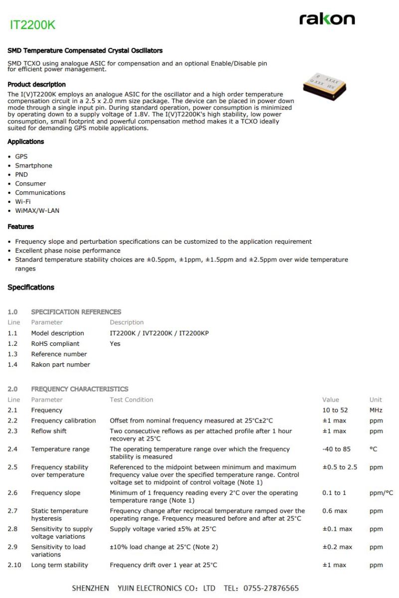 | 型號(hào) | IT2200J (TCXO) | |