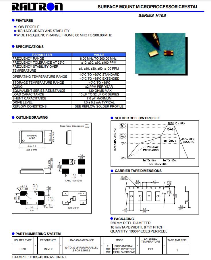 Raltron晶振,H10S-16.384-18-1030-TR,6G無線應用晶振,Raltron晶振,美國進口晶振,H10S石英晶體,H10S-16.384-18-1030-TR晶振,石英貼片晶振,6035mm晶振,頻率16.384MHz,負載18pF,頻率穩定性30ppm,工作溫度-10~60°C,高精度晶振,無鉛環保晶振,6G無線應用晶振,攝像機晶振,網站終端晶振,通訊設備晶振.