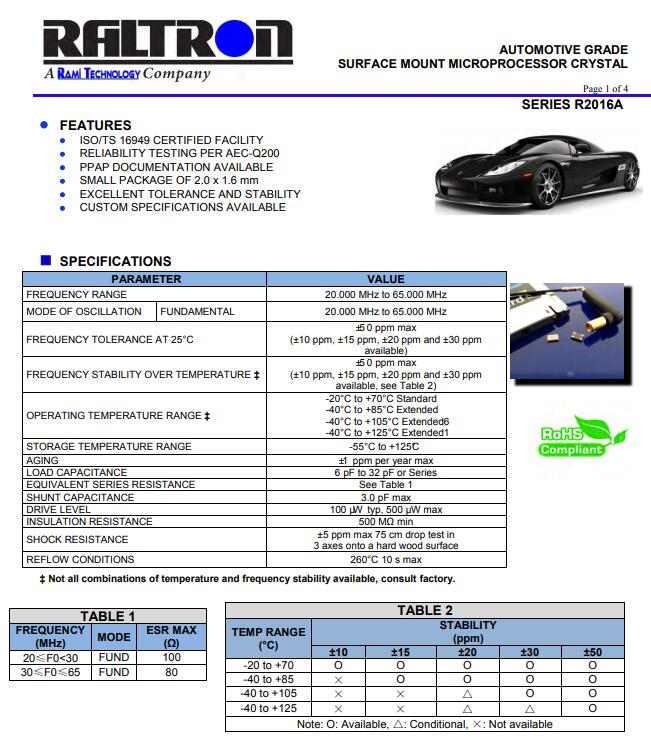 Raltron晶振所生產的頻率元件以及使用:
