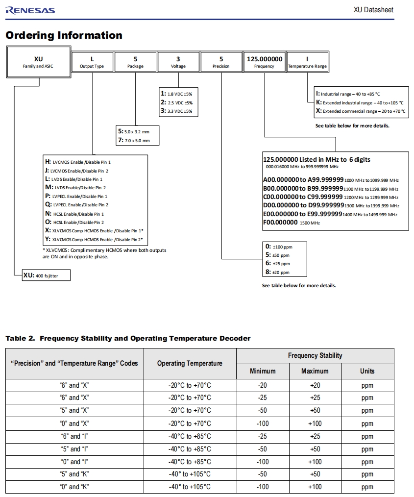 | XUP735125.000000X | Renesas Electronics America Inc | XU | 125 MHz | LVPECL | 3.3V |