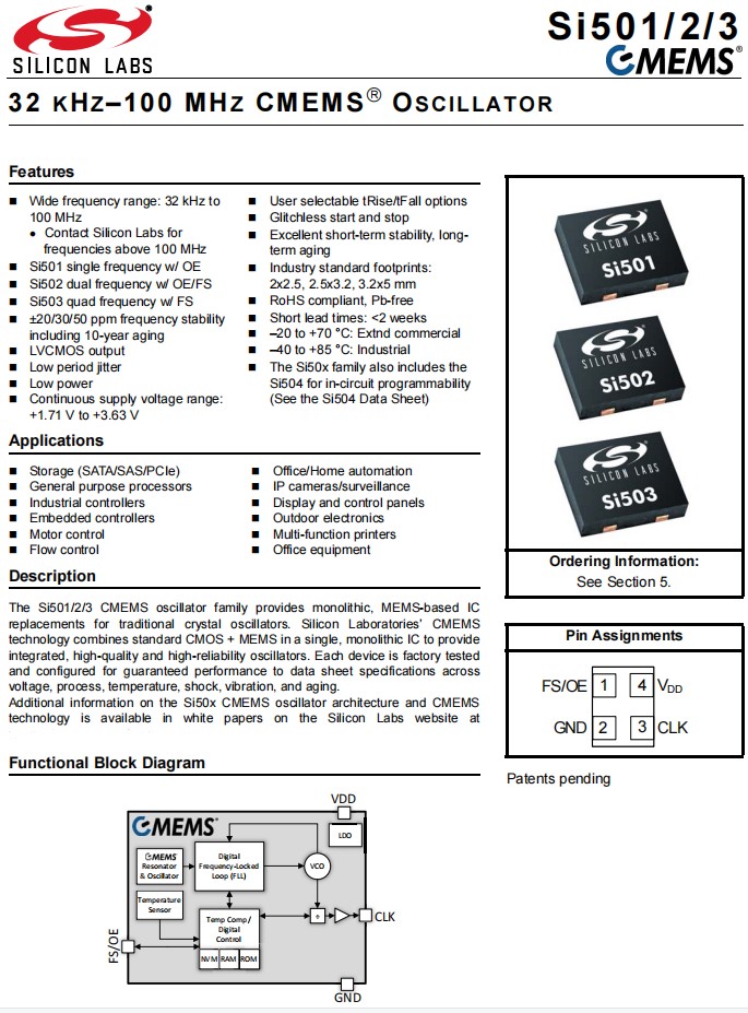 更多>>501BAA50M0000BAF,Silicon通信晶振,Si501,5032mm晶體