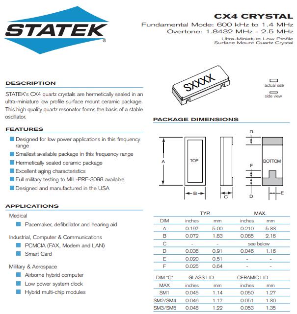更多>>STATEK晶振,CX4晶振,5020小體積晶振