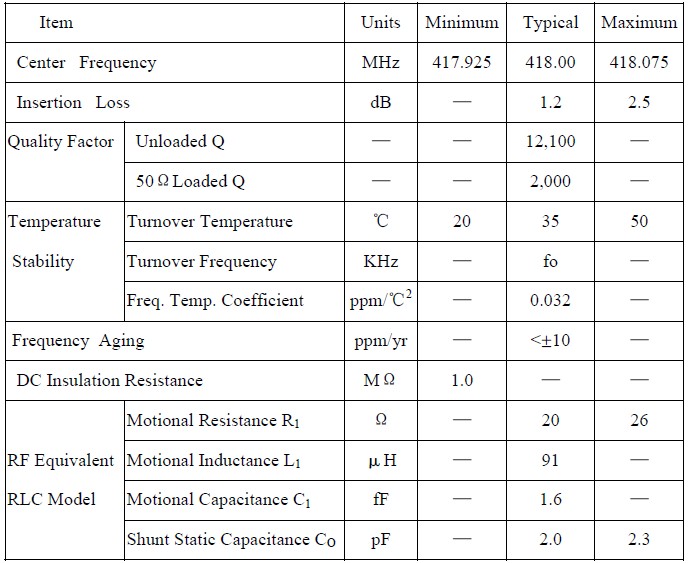 R418聲表面濾波器,陶瓷濾波器,聲表面波