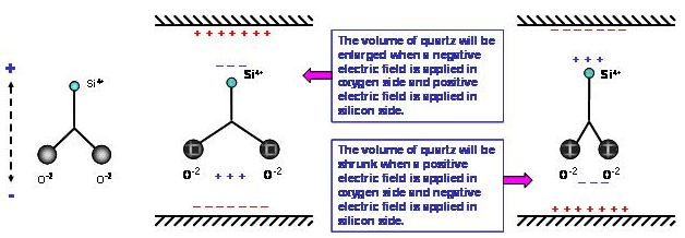 石英是由硅原子和氧原子組合而成的二氧化硅(Silicon Dioxide, SiO2), 以32點群的六方晶系形成的單結晶結構.單結晶的石英晶體結構具有壓電效應特性, 當施加壓力在晶體某些方向時, 垂直施力的方向就會產生電氣電位. 相對的當以一個電場施加在石英晶體某些軸向時, 在另一些方向就會產生變形或振動現象. 掌握單結晶石英材料的這種壓電效應, 利用其發生共振頻率的特性, 發揮其精確程度作為各類型頻率信號的參考基準, 就是水晶震蕩器的設計與應用. 因為石英晶體具有很高的材料Q值,所以絕大部份的頻率控制組件,如共振子及振蕩器,都以石英材料為基礎. 以石英為基礎的頻率控制組件可以依其壓電振動的屬性, 可以分為體波(bulk wave)振動組件及表面聲波(surface acoustic wave)振動組件. 體波振動組件如石英晶體共振子, 石英晶體濾波器及石英晶體振蕩器, 表面波振動組件如表面波濾波器及表面波共振子.